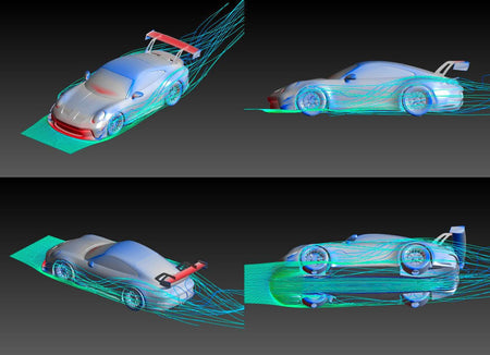 The Complete Dundon aero package for the 992 GT3 was designed to increase downforce while minimizing the drag coefficient. Using Computational Fluid Dynamics (CFD) allowed us to make a complete package, swan neck wing, dual carbon dive planes and front carbon splitter tailored to the shapes of Porsches 911's, Caymans and 911 Cups.