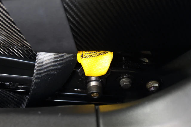 BBI Harness Install Kit included extended bolts to properly accommodate both the OEM seat belts and racing harnesses at the factory mounting locations on the 991 GT3 / 981 GT4 Sport Bucket Seats. This kit features metal sleeves fitted around the bolts so that the belt brackets can pivot freely on the bolt. Sold as a kit per seat.