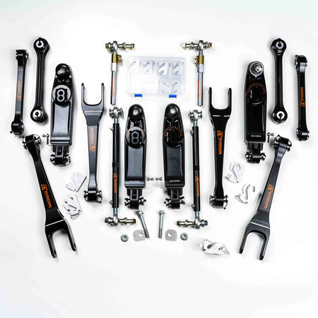 These packages will allow for a precise and accurate alignment with a wide range of camber, toe and caster settings. These adjustments open up options for different wheel & tire fitments. They also remove rubber from the suspension system, improving steering feel and the driver's connection to the road.