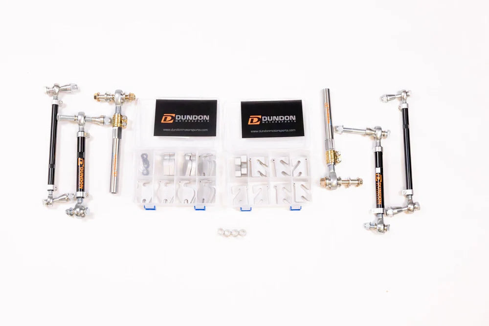 Dundons suspension parts utilize the highest quality teflon-lined FK bearings, high-grade studs and nuts, billet aluminum and Titanium construction (when applicable) and a unique, thoughtful design.