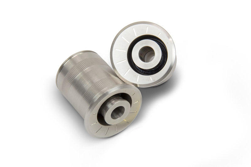 Eccentric Control Arm Monoball Cartridges replace inner rubber bushings with spherical bearings, providing low friction and precisely holding camber settings. The eccentric design allows increasing or decreasing camber, as needed.