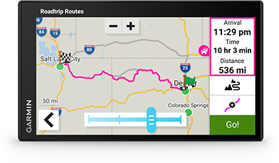 Travel confidently along a custom route1 that’s based on the size and weight of your rig.