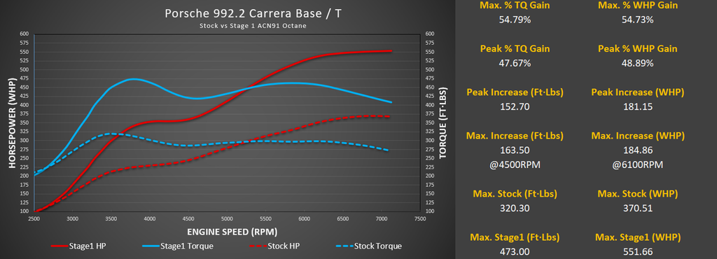 Maps are available in Stage 1 or Stage 2 (upgraded link pipes) calibrations. Please specify your specific hardware upgrades with us when you mail in your ECU.
