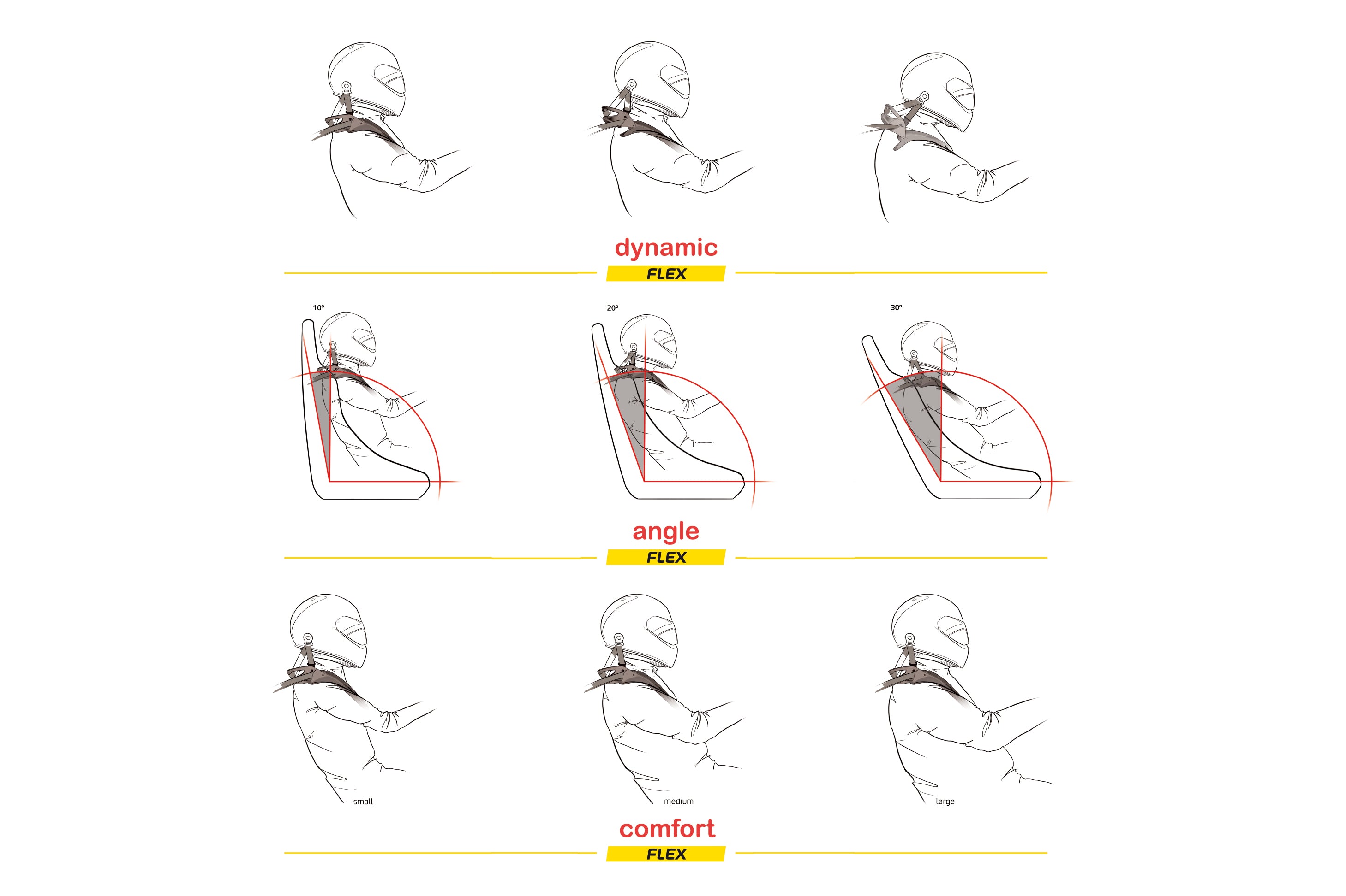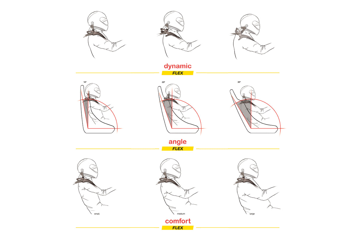 - Retention ears - the collar features extended vertical ears at the outside edge that help to keep your belts on the FLEX even in a secondary impact.